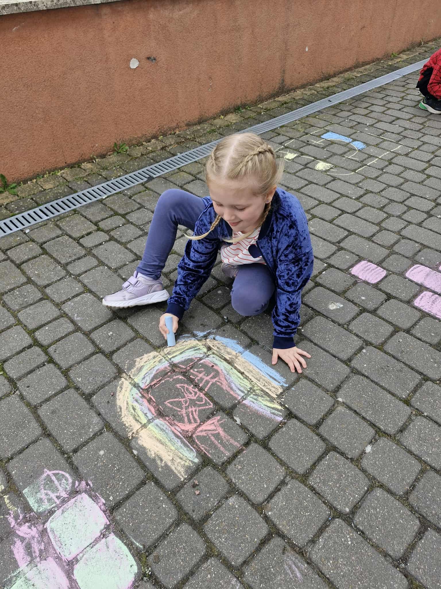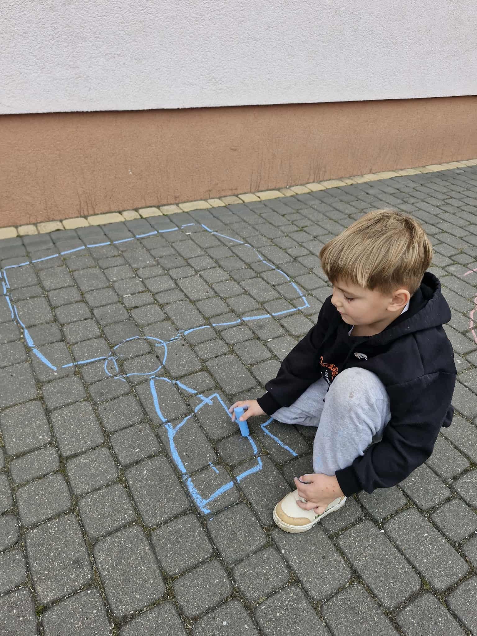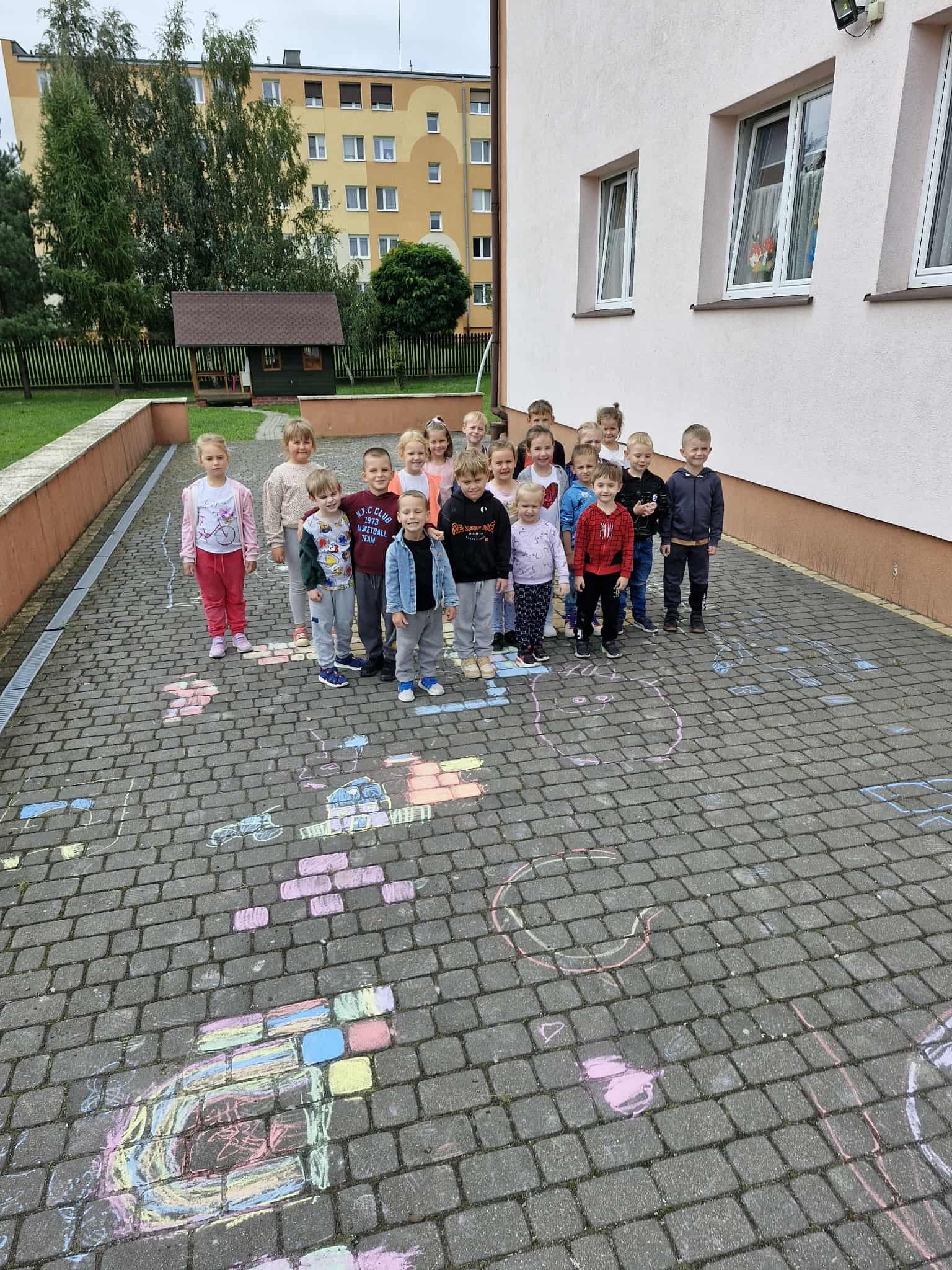 W Dniu Kropki dzieci z grupy Króliczki wybrały się do przedszkolnego ogrodu, w którym na chodnikowych płytach, za pomocą kolorowej kredy wykonywały kolorowe obrazki. Każdy przedszkolak znalazł sobie odpowiednie miejsce do pracy i rozpoczął twórcze malowanie….![]()