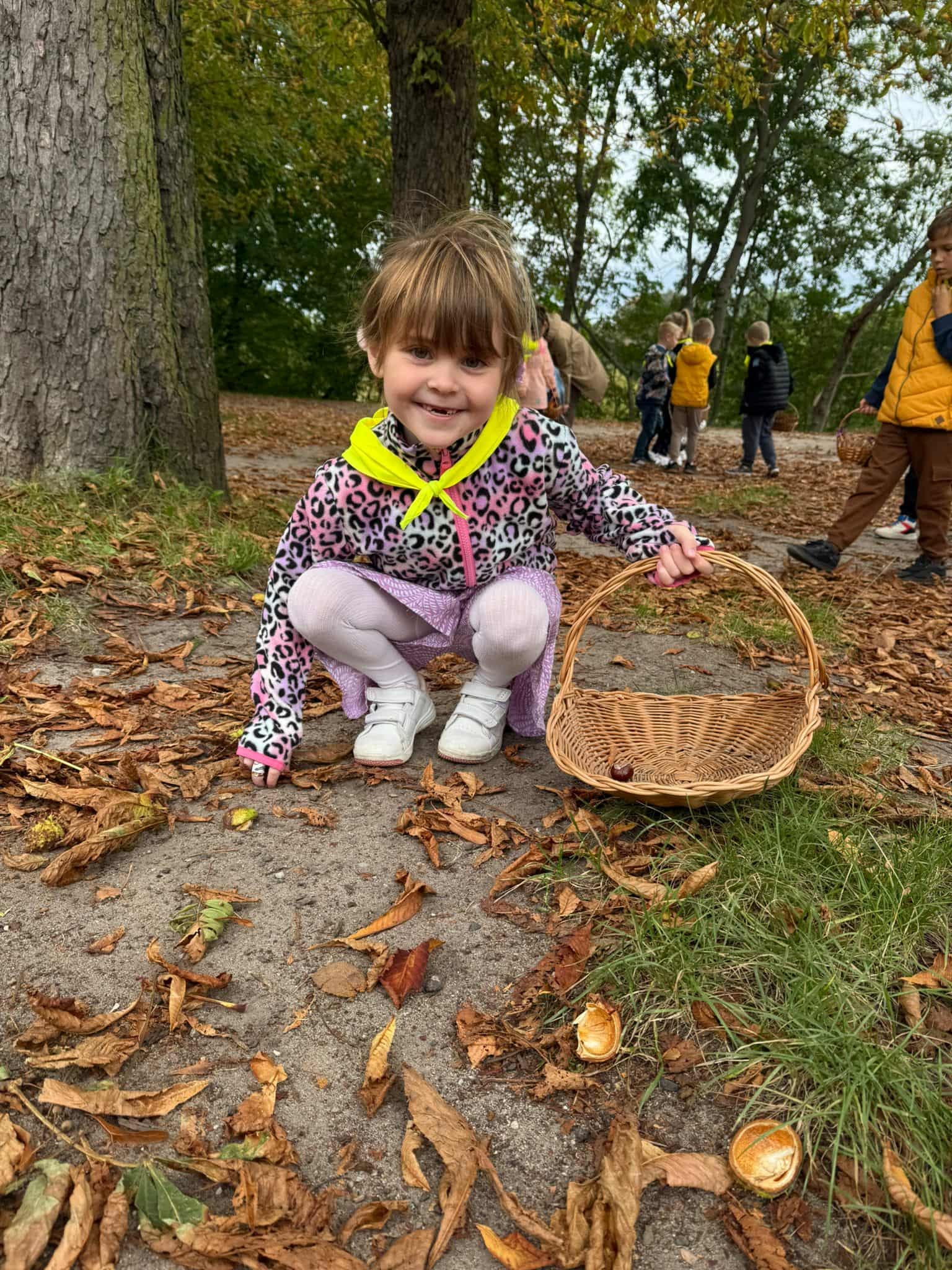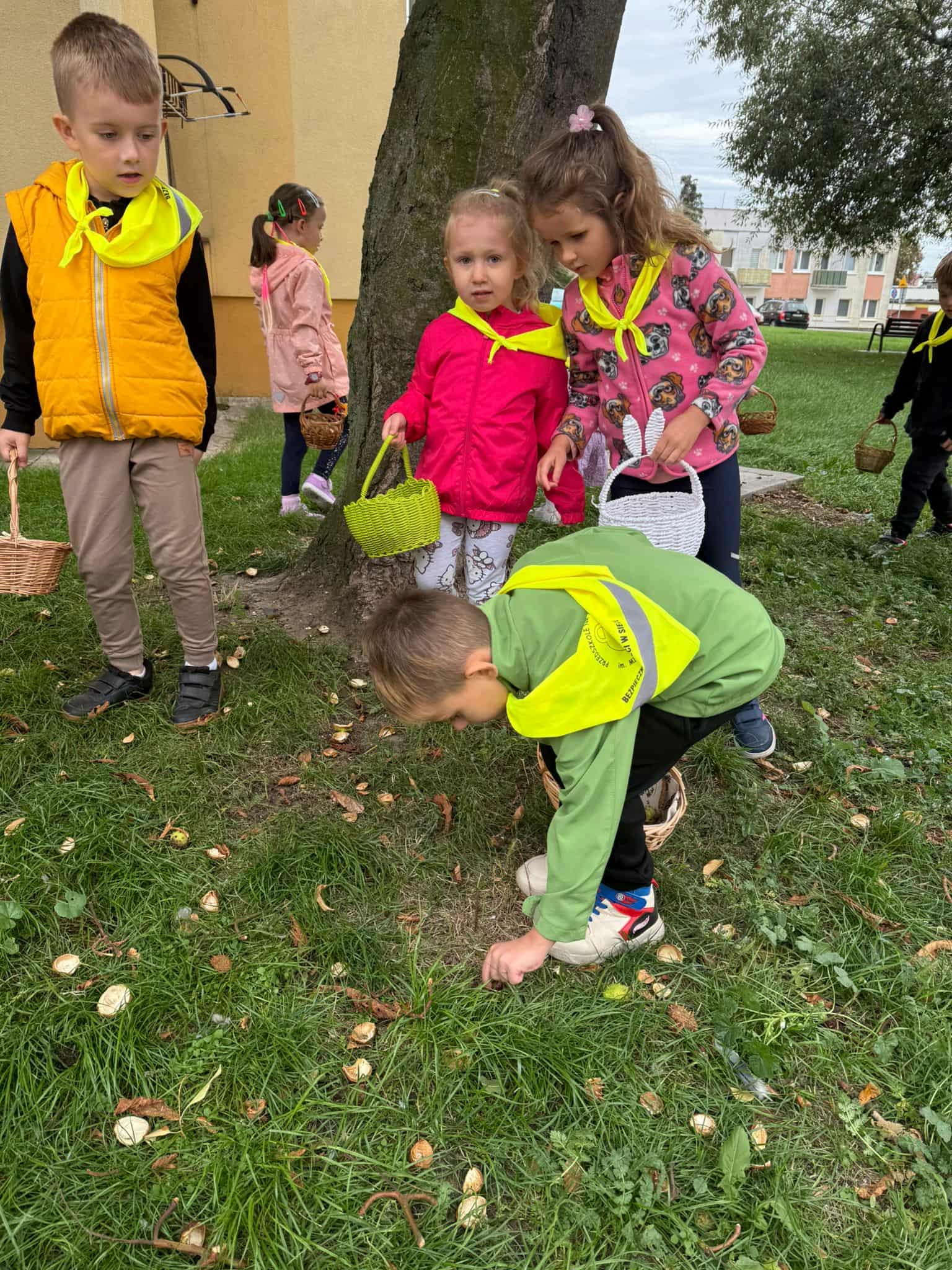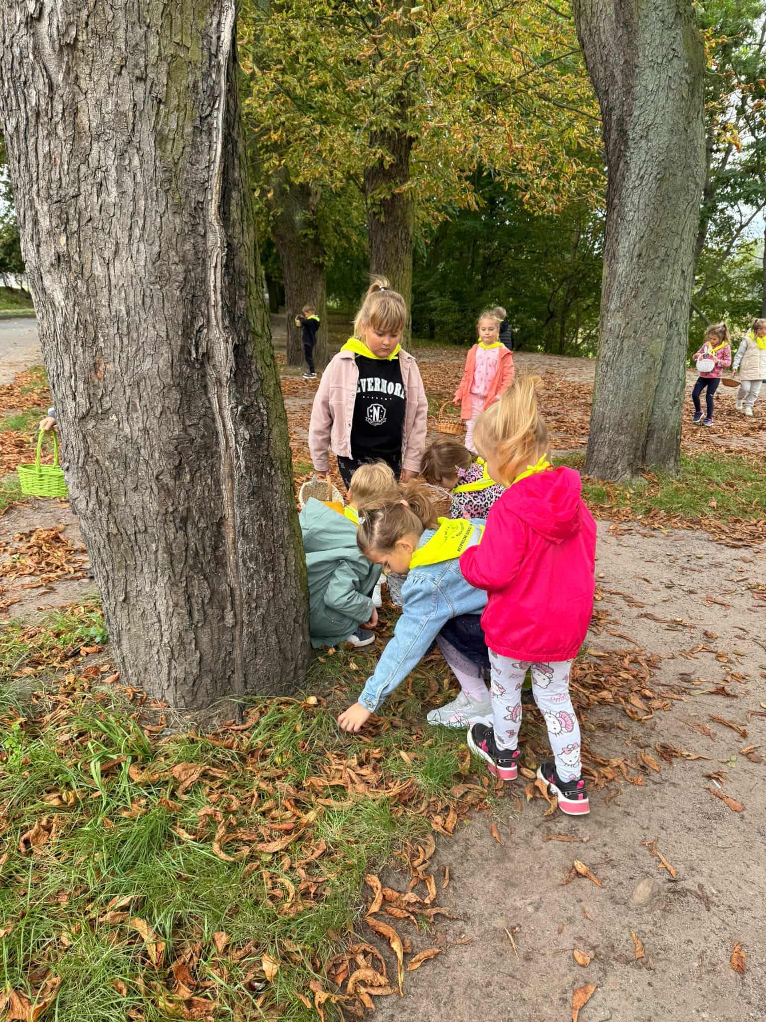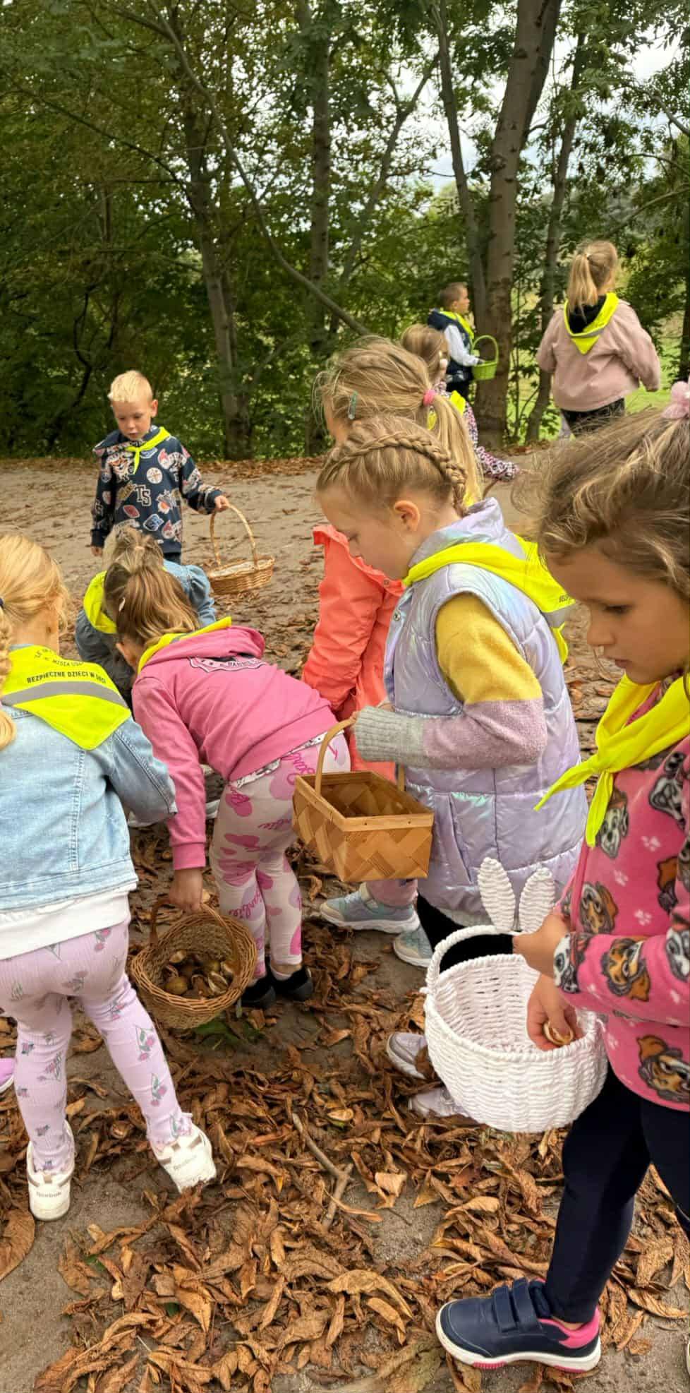 Dnia 22 września nasze przedszkolaki z grupy Króliczki postanowiły udać się na spacer w celu poszukiwania oznak jesieni, niezwykle kolorowej pory roku oraz zebrania jej darów w postaci liści i kasztanów. Po drodze uczyły się nazywać napotkane drzewa. Przedszkolaki dzielnie zbierały do koszyczków leżące pod nimi kasztany oraz kolorowe liście. Wszystkie te „dary jesieni” wzbogaciły kącik przyrody w sali, a kasztany dzieci wykorzystają do ćwiczeń w liczeniu. Była to dobra okazja do rozbudzenia zainteresowań otaczającą przyrodą oraz wzbogacenia wiedzy przyrodniczej przedszkolaków.