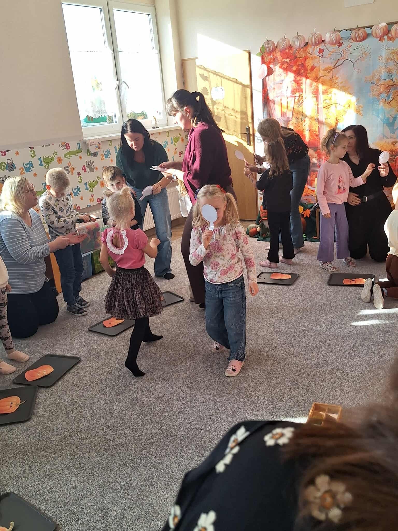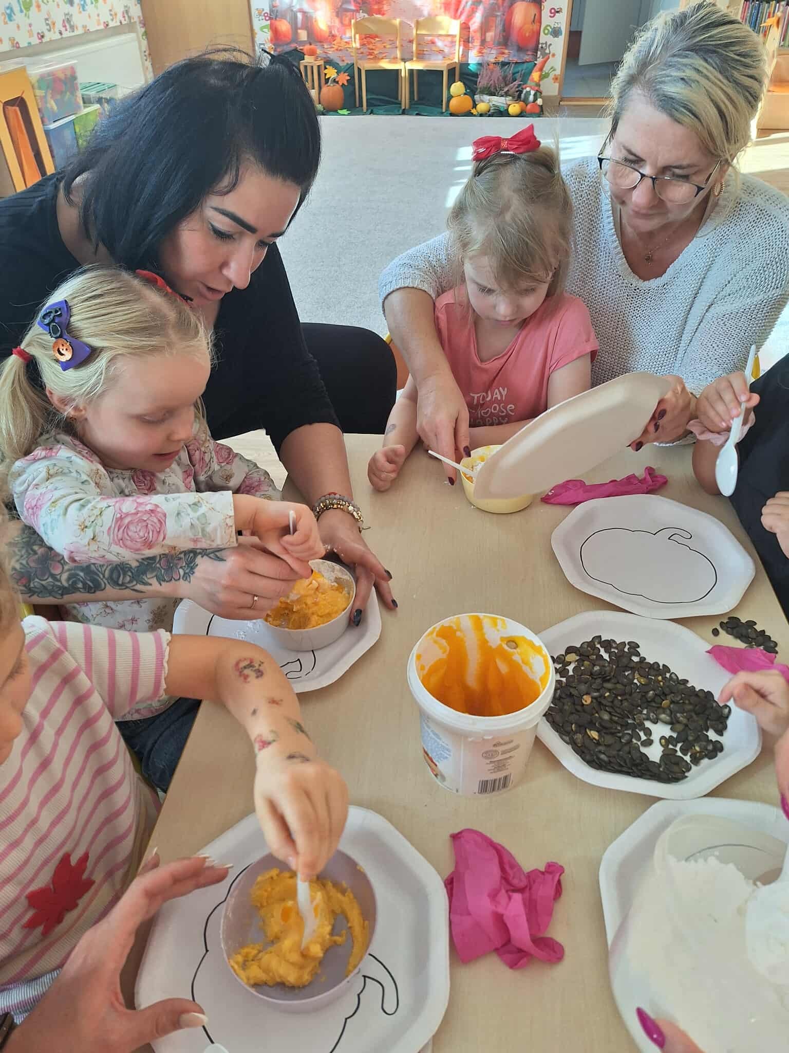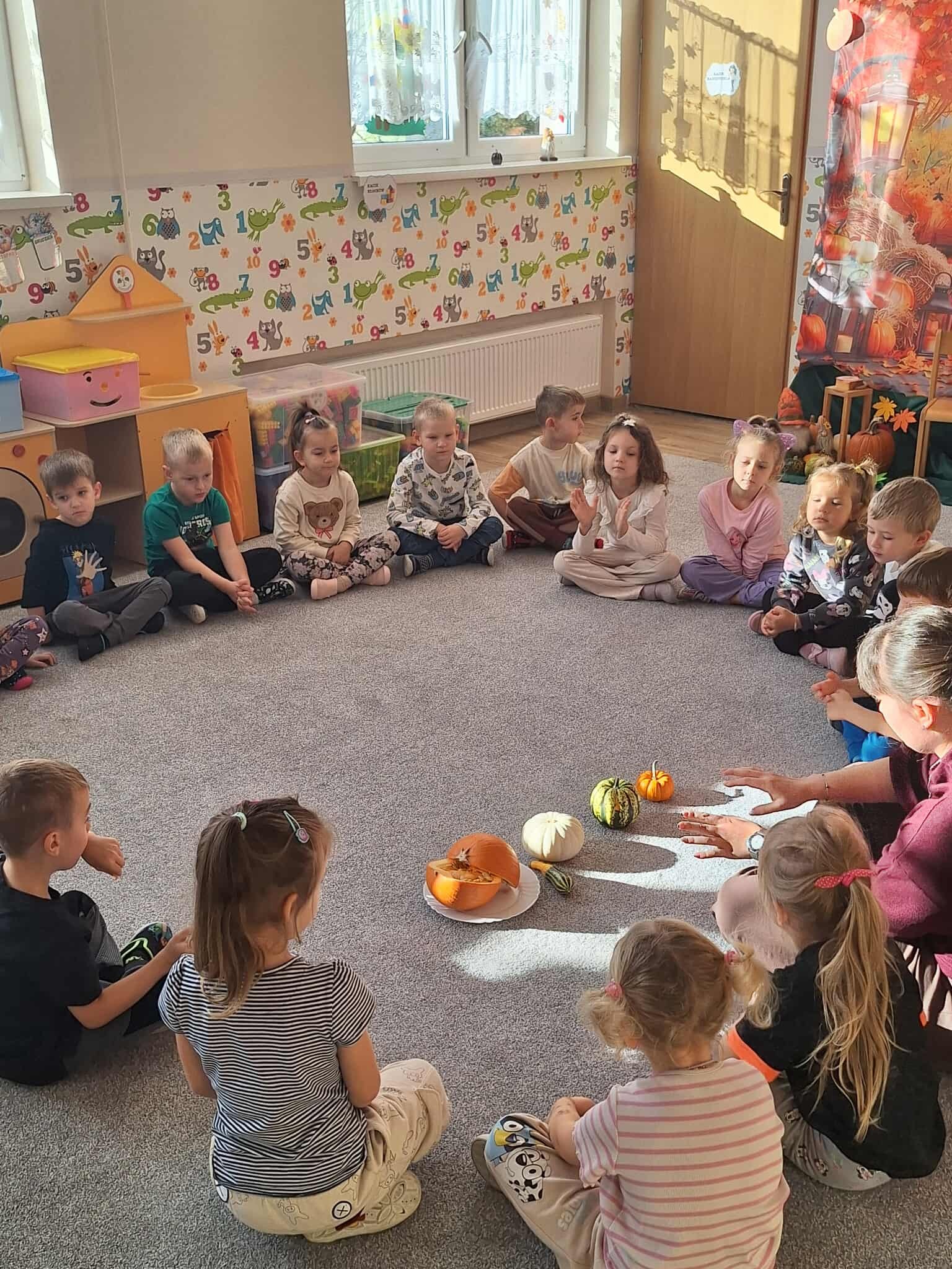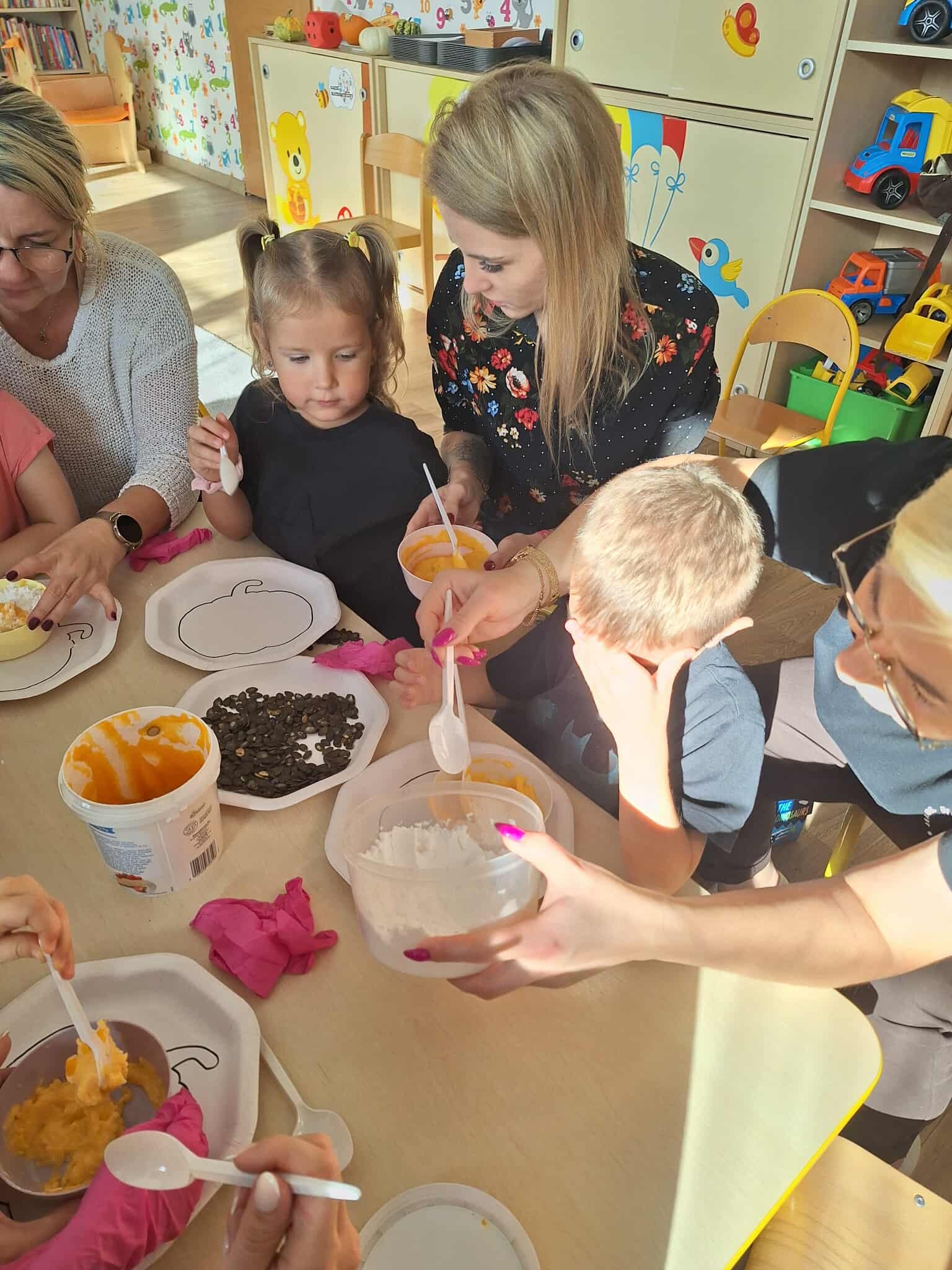 oraz wspólnie świętowaliśmy dzień dyni uczestnicząc w rozmaitych zabawach o dyniowej tematyce. Zajęcia przebywały w radosnej atmosferze. Bardzo dziękujemy Rodzicom przedszkolaków za zaangażowanie.