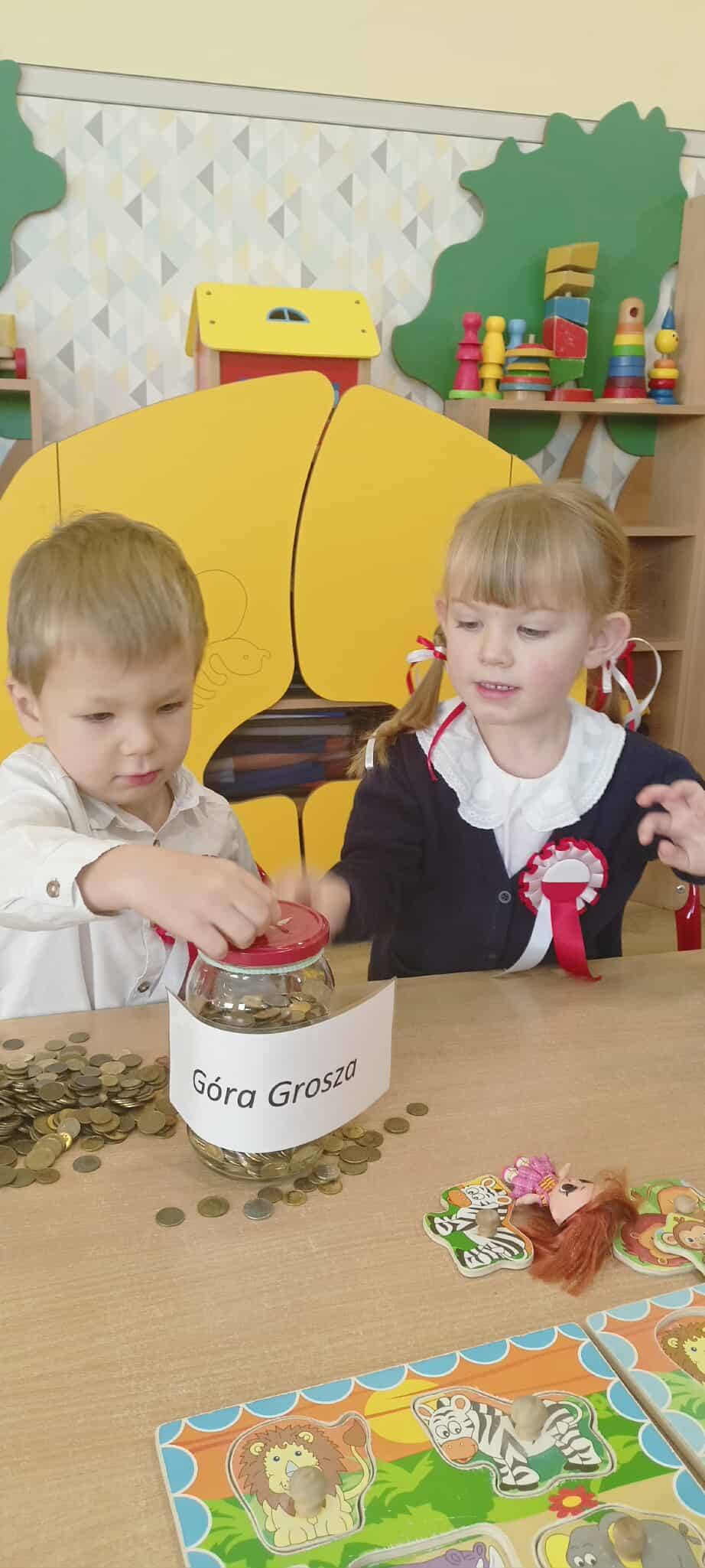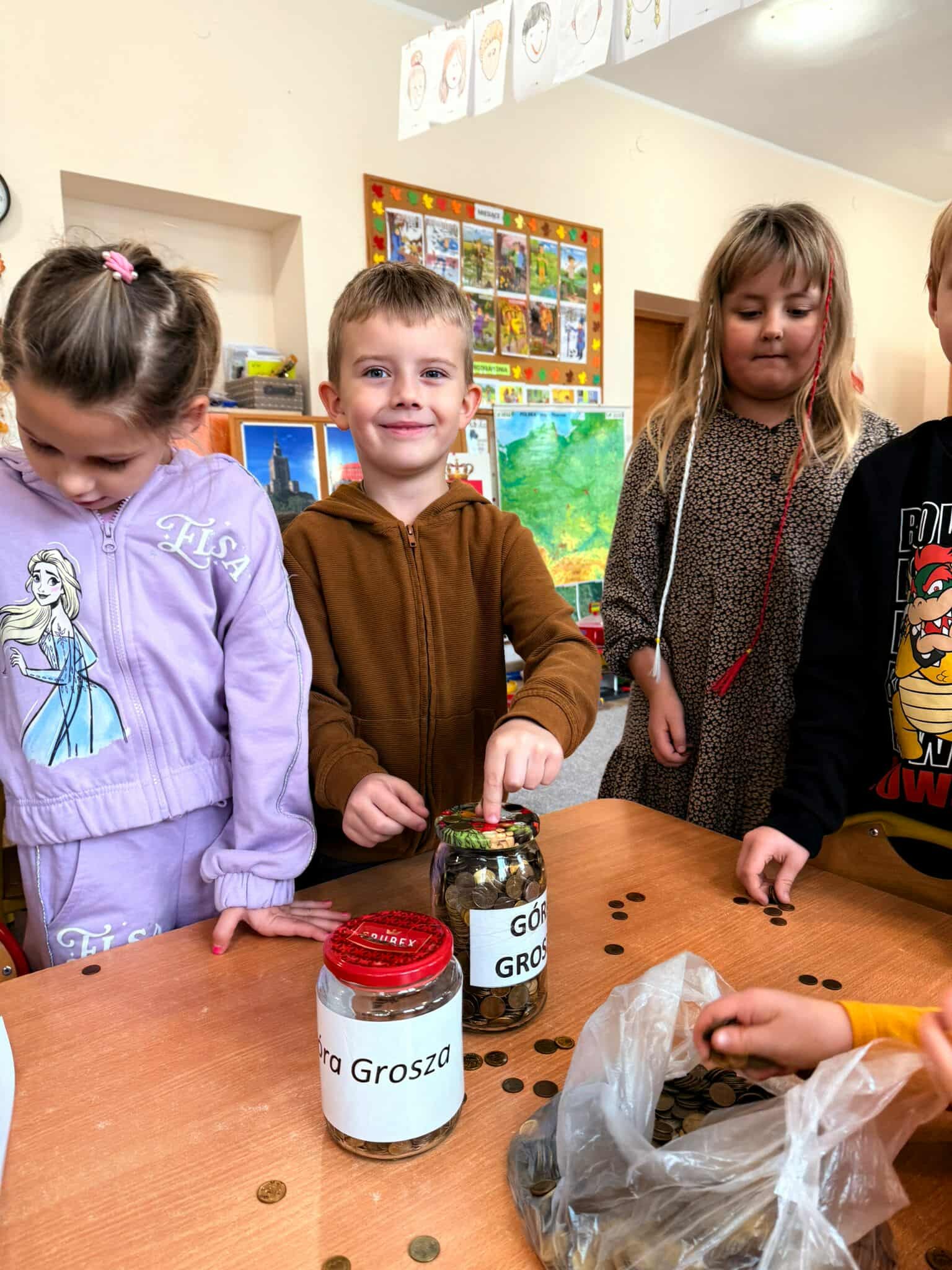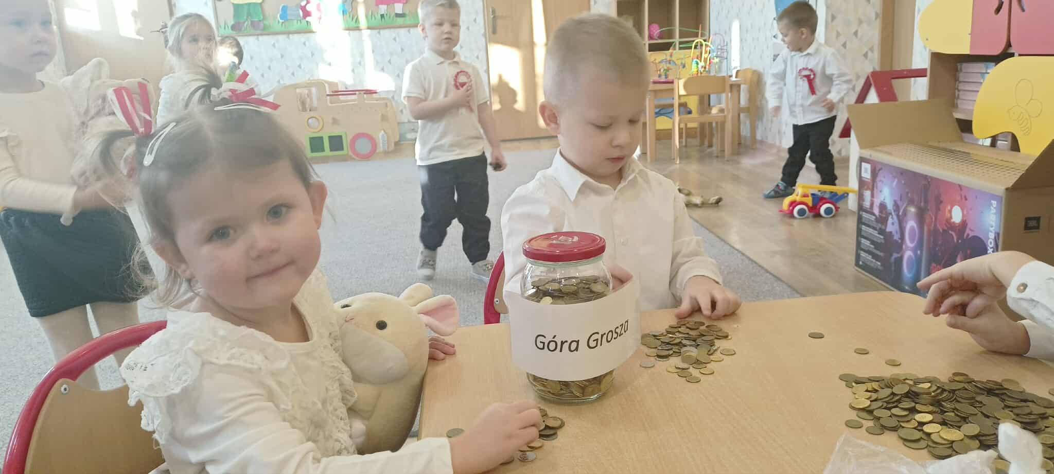 Kolejny raz nasze przedszkole włączyło się w ogólnopolską akcję „Góra Grosza”, organizowaną przez Towarzystwo Nasz Dom. Do 31 marca 2026r. zbieramy monety groszowe- każdy najmniejszy grosz ma ogromne znaczenie. Po co to robimy???Celem akcji jest pomoc dzieciom, które nie wychowują się w swoich rodzinach- wspieramy tworzenie i utrzymanie rodzinnych domów dziecka, rodzin zastępczych oraz innych form opieki, które dają poczucie bezpieczeństwa i miłości. Nie trzeba wiele, żeby pomóc- czasem wystarczy jeden grosz. Zróbmy razem coś dobrego- z małych monet budujemy wielką Górę Grosza.