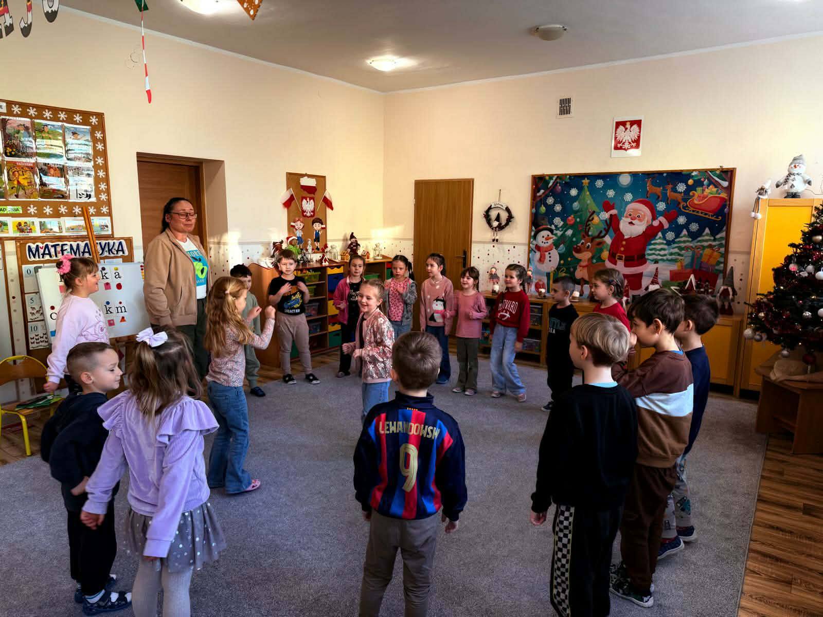 ,,Króliczki ” brały dzisiaj udział w zajęciach otwartych z rodzicami. Tematyka zajęć dotyczyła Świąt Bożego Narodzenia i tradycji z nimi związanych. ![]()