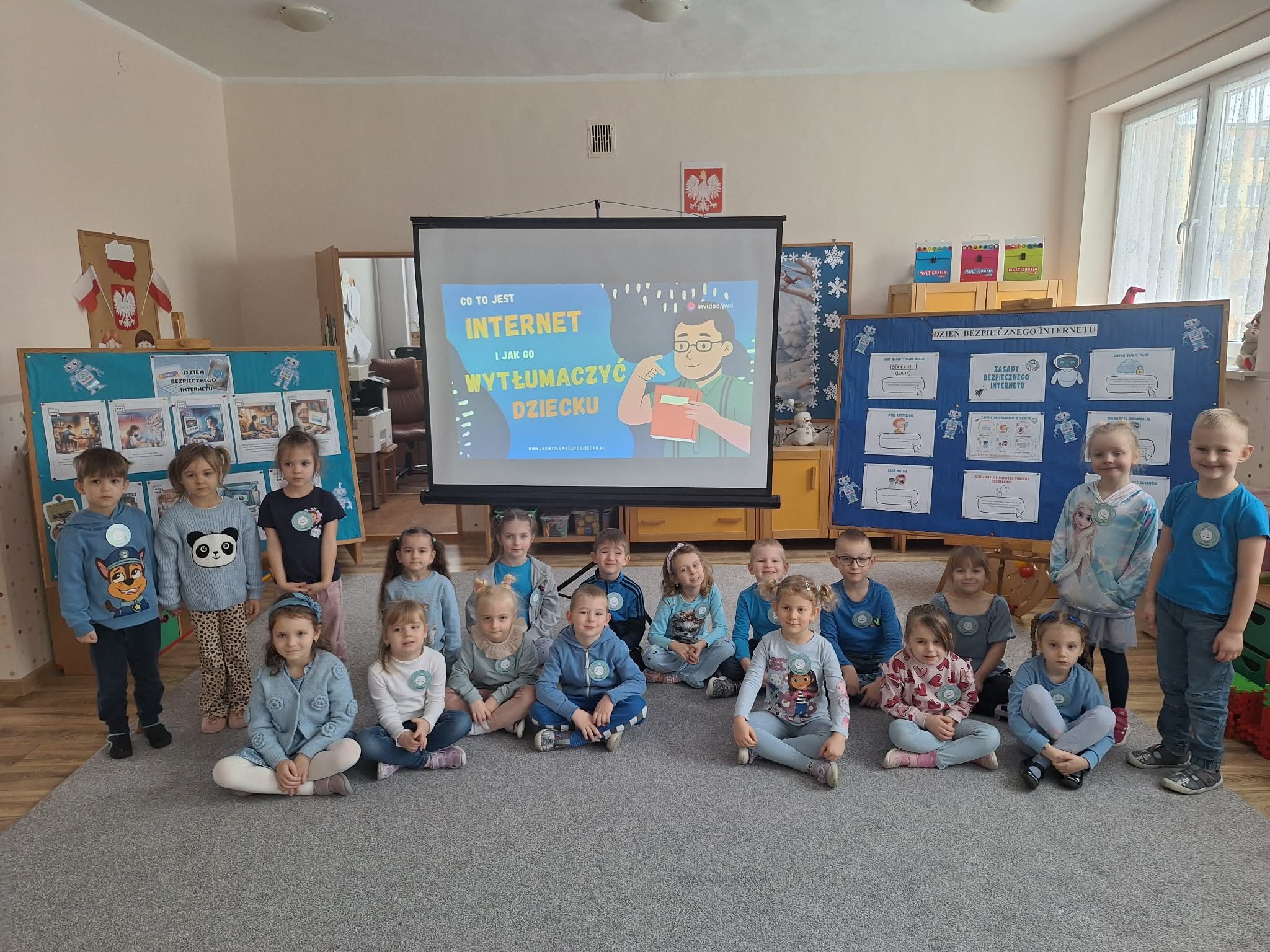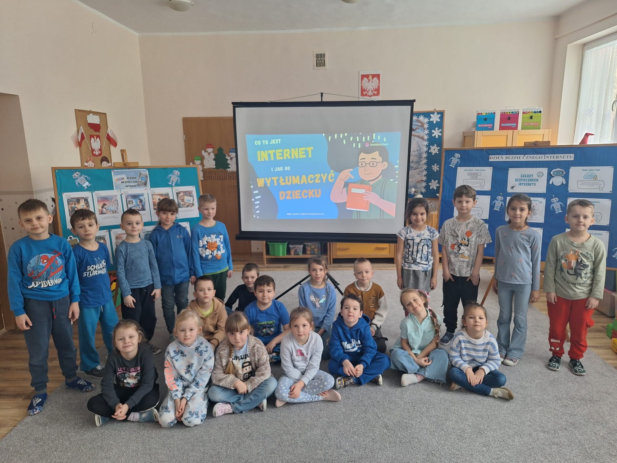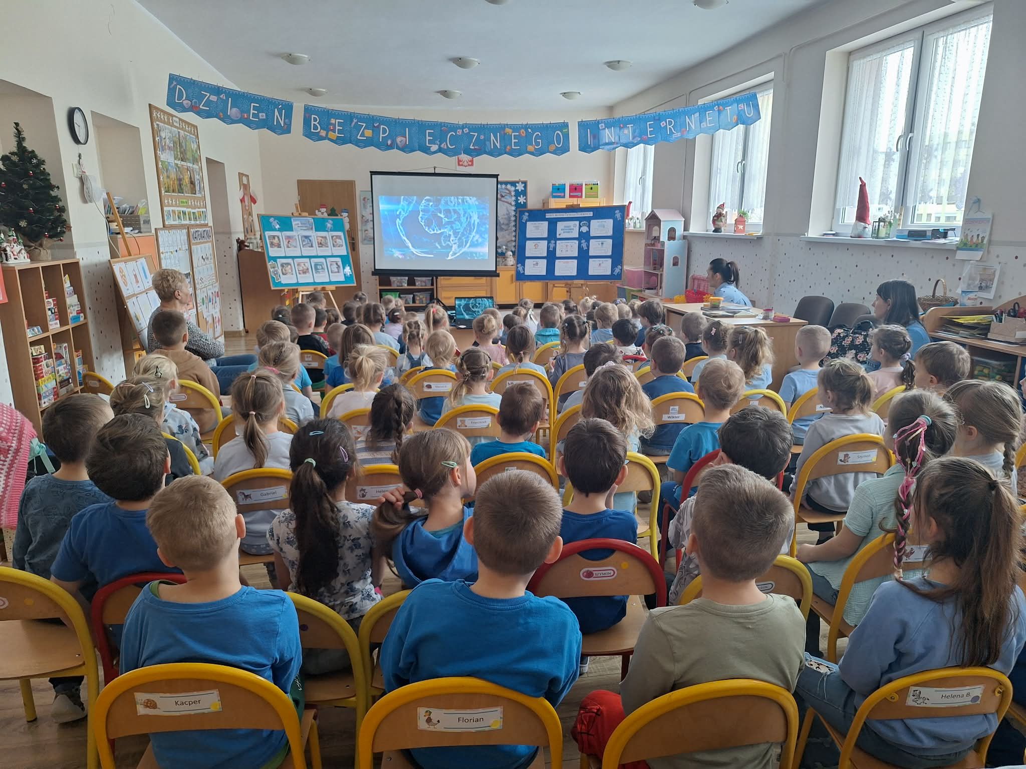Dzisiaj w naszym przedszkolu wszystkie grupy spotkały się, by wspólnie porozmawiać o bezpieczeństwie w sieci