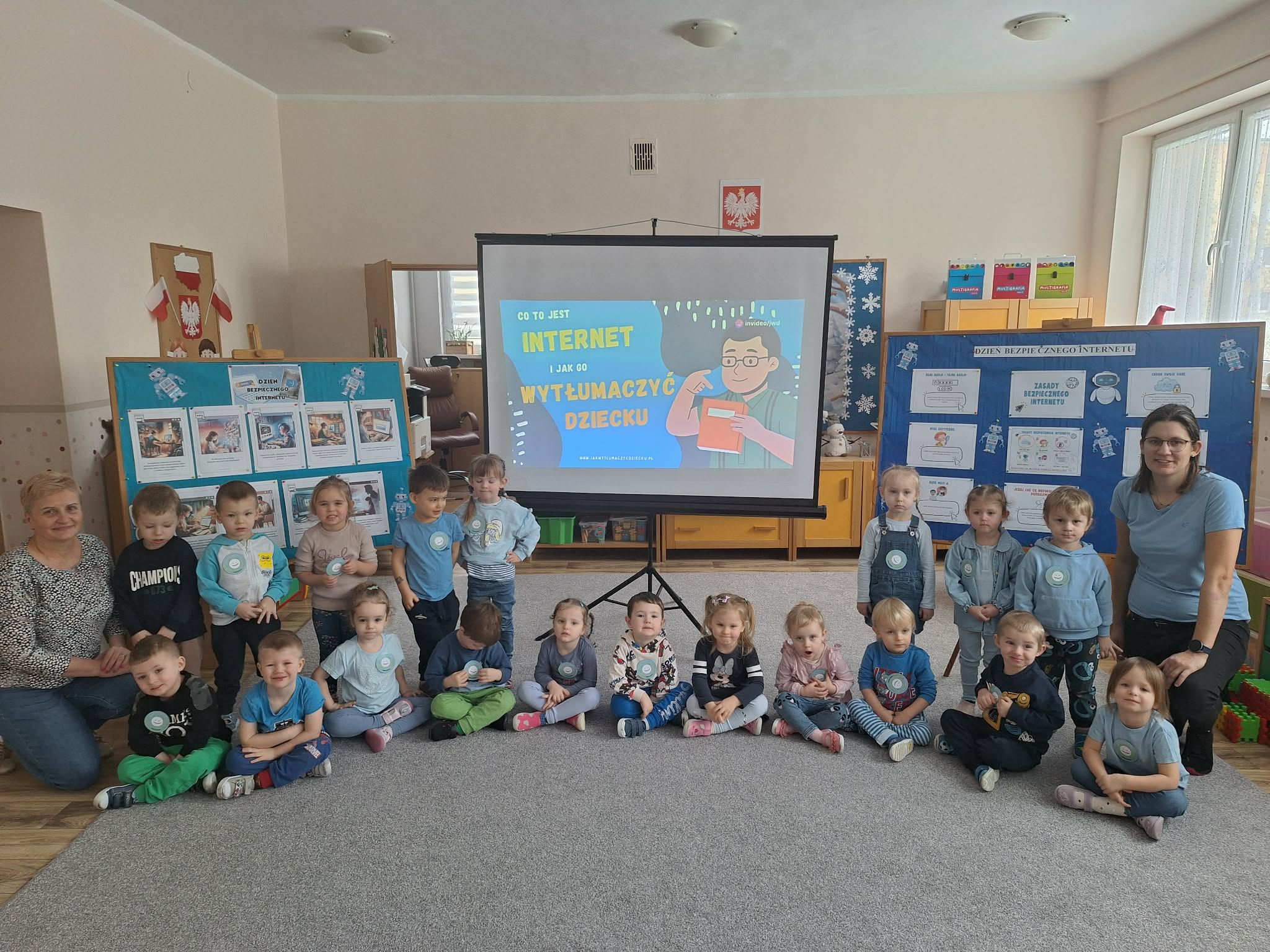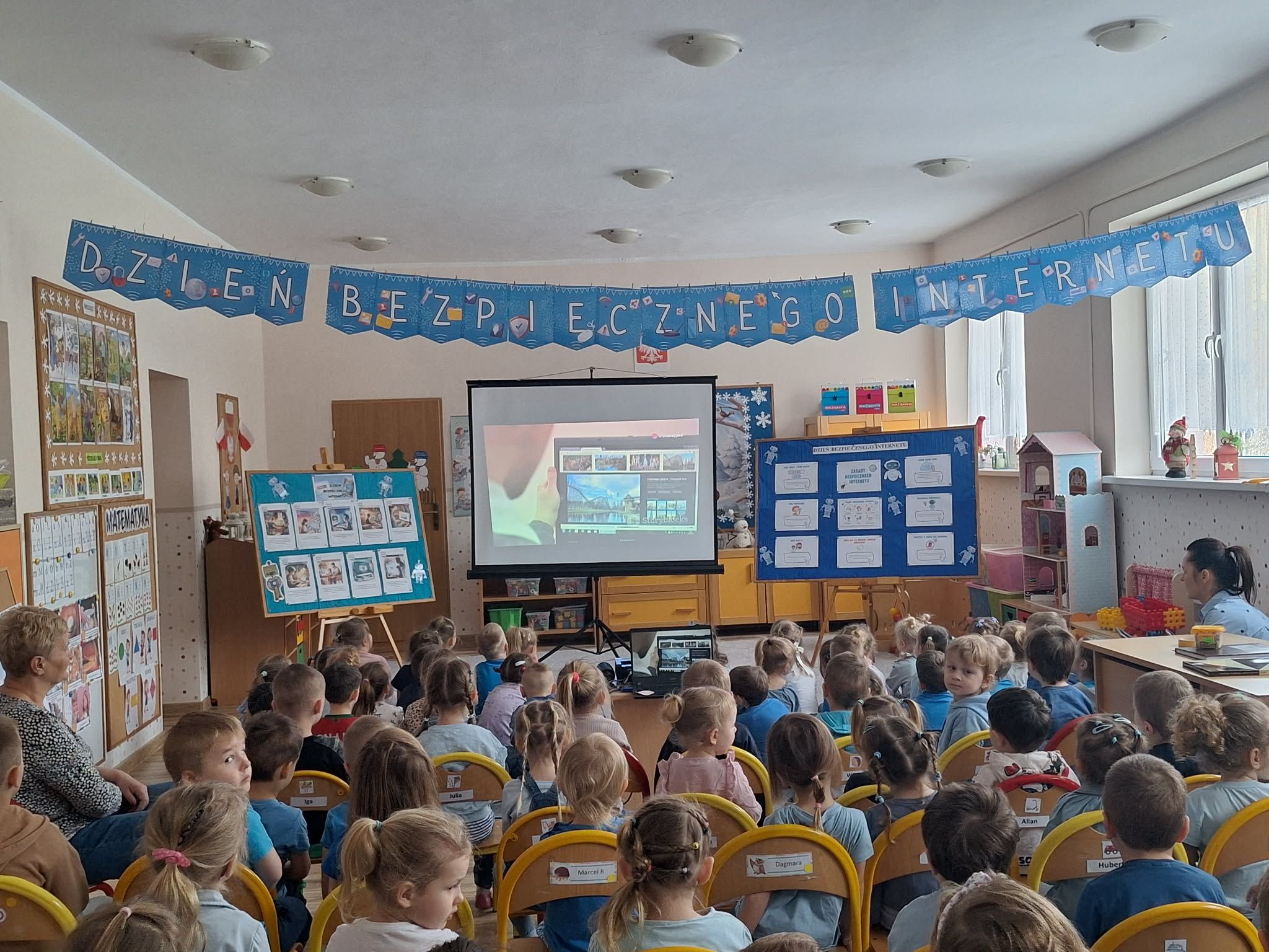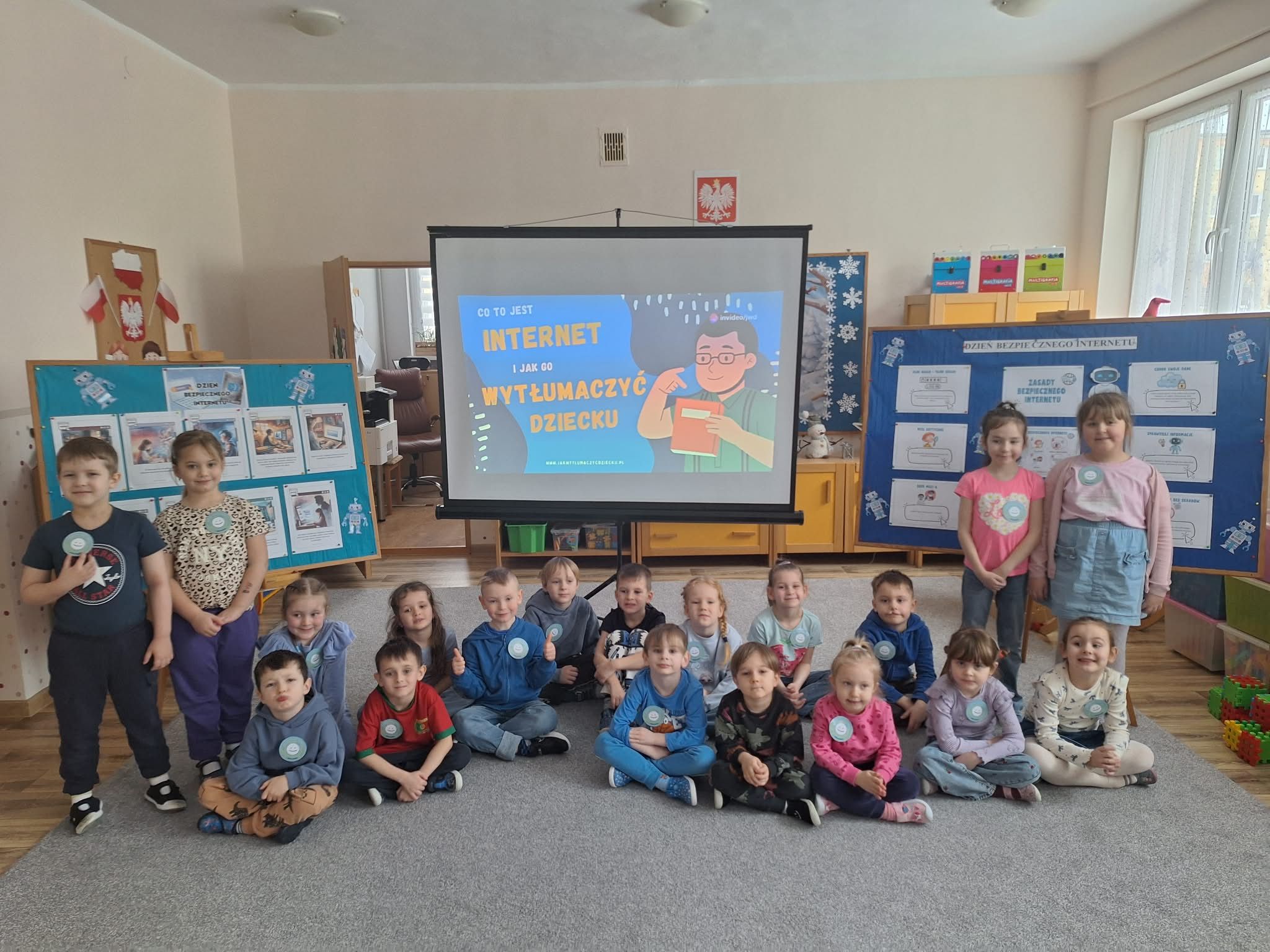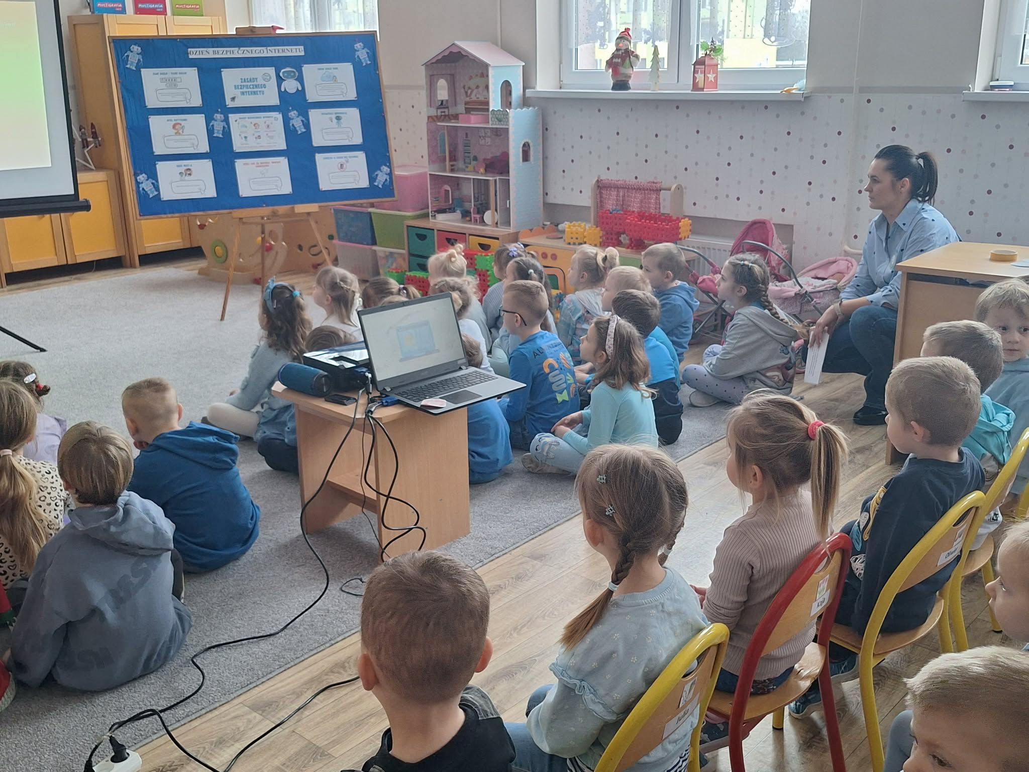 Dzisiaj w naszym przedszkolu wszystkie grupy spotkały się, by wspólnie porozmawiać o bezpieczeństwie w sieci